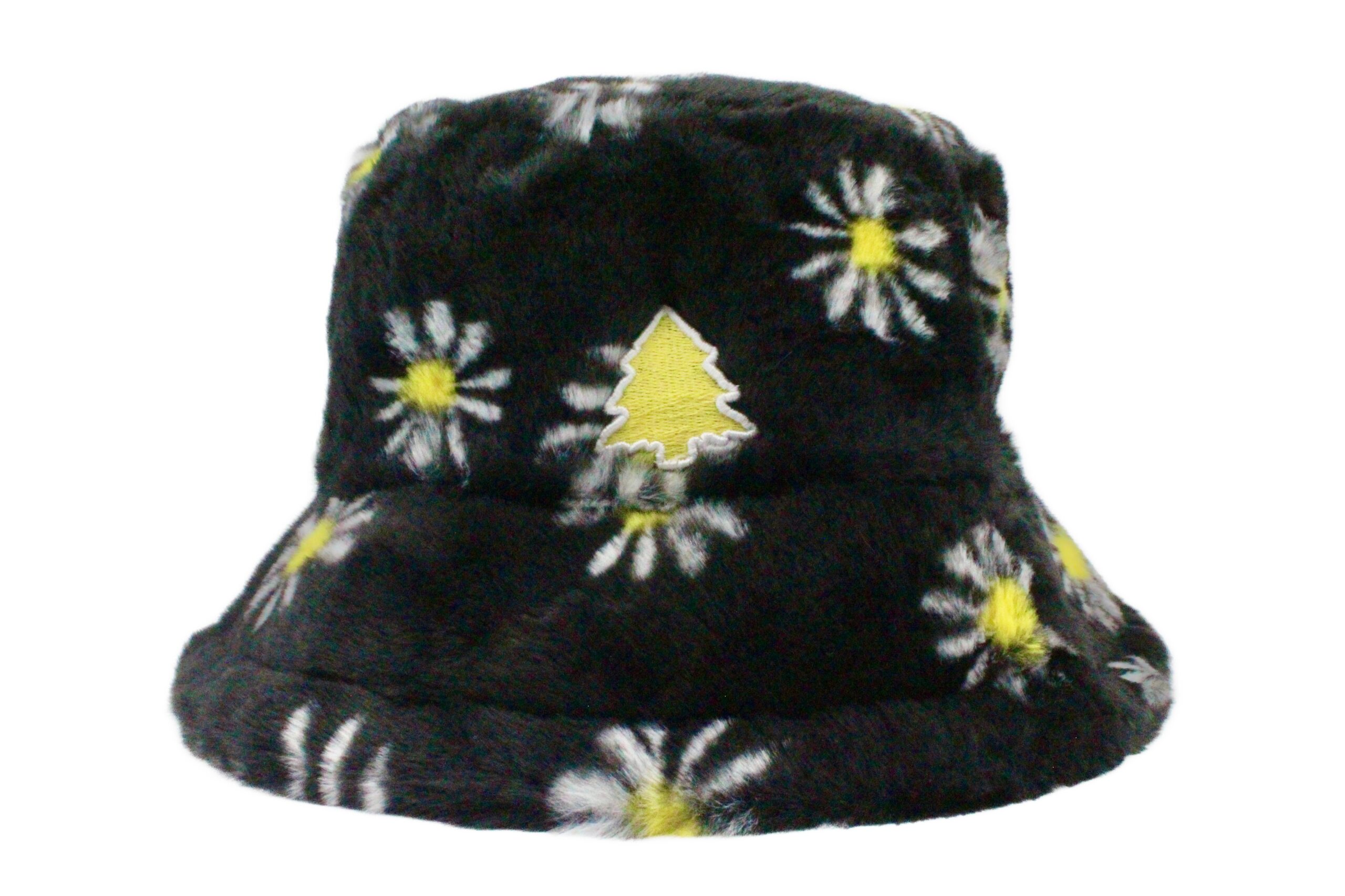 Black Daisy Fuzzy Bucket Hat