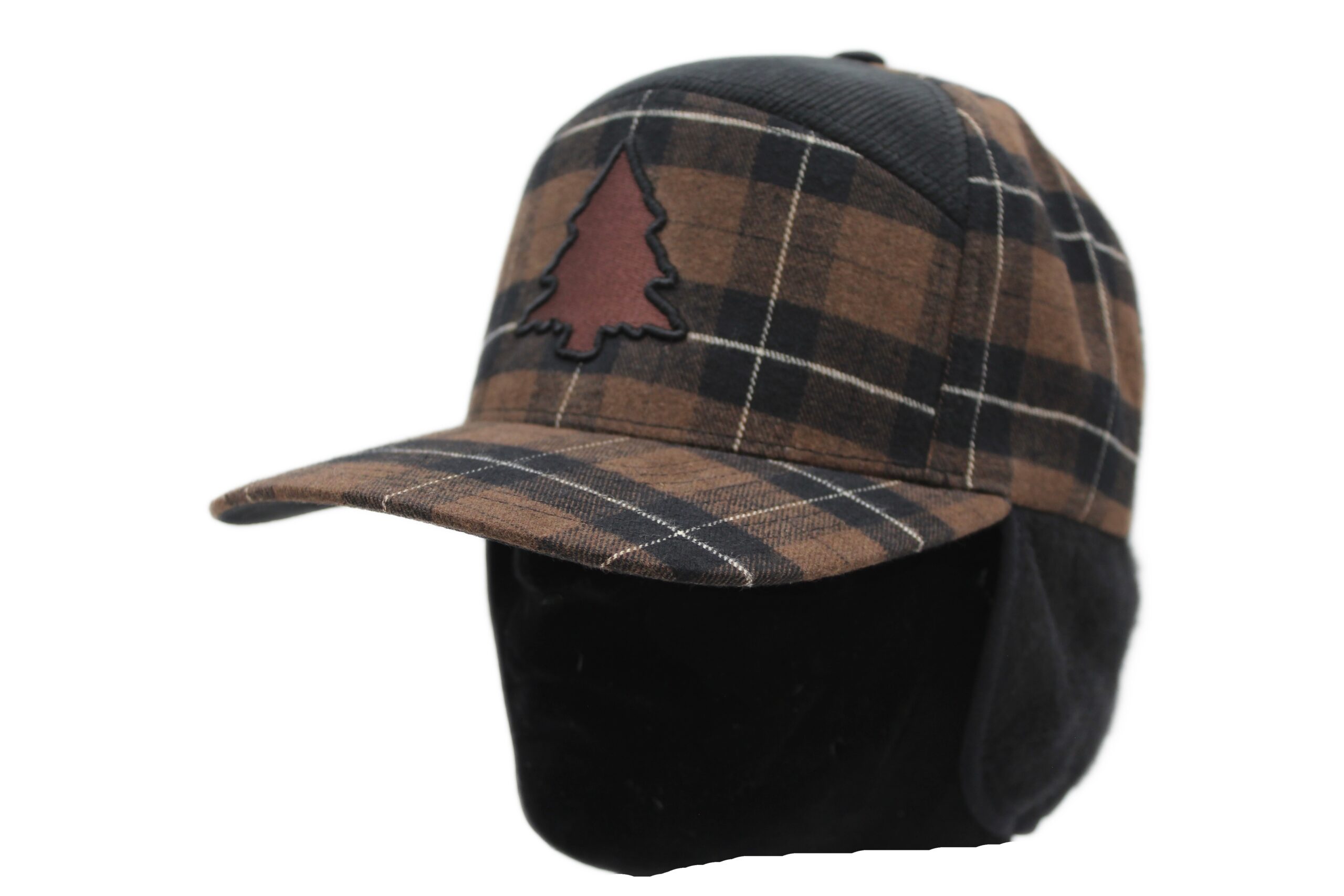 Brown Plaid Earflap Camper Hat