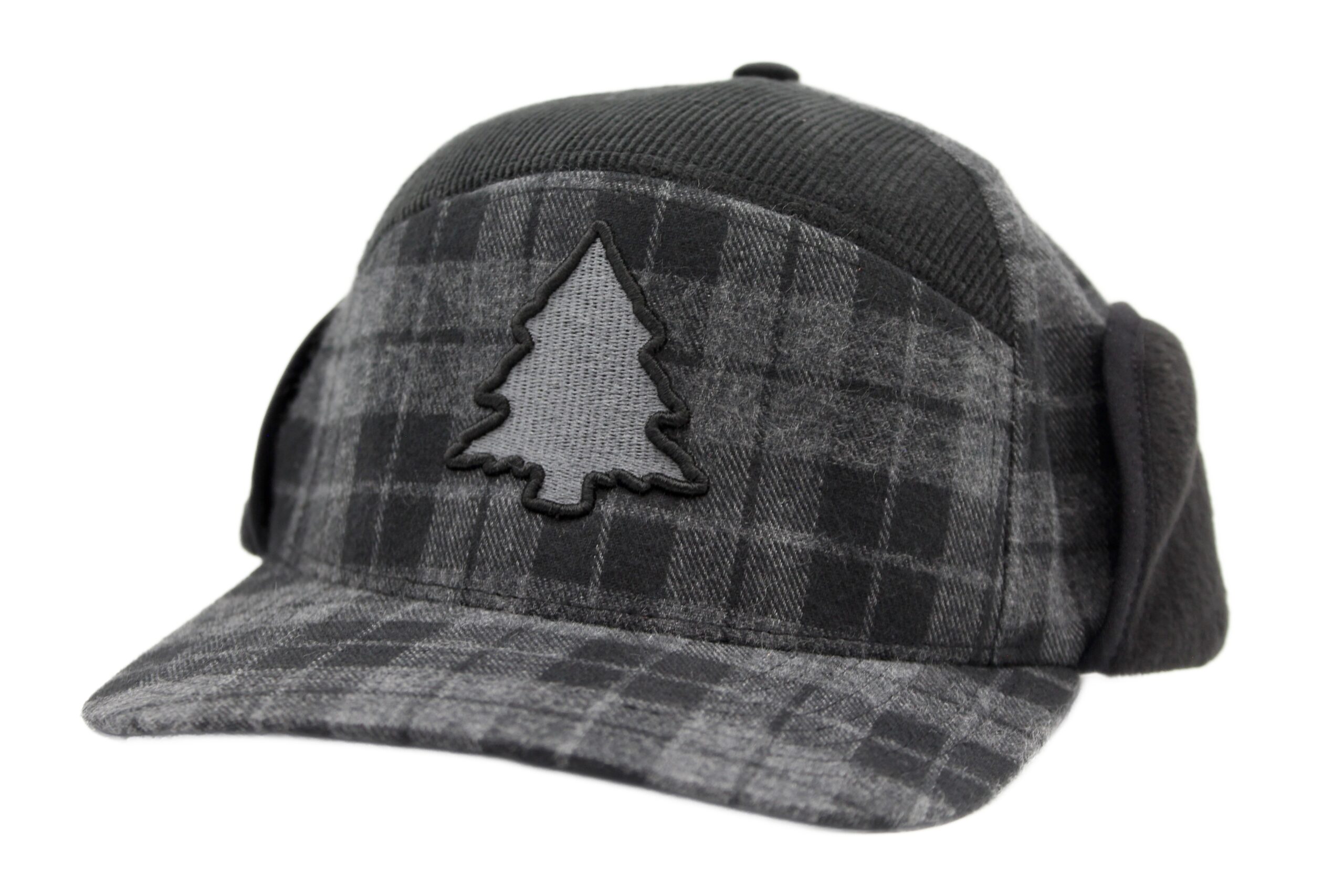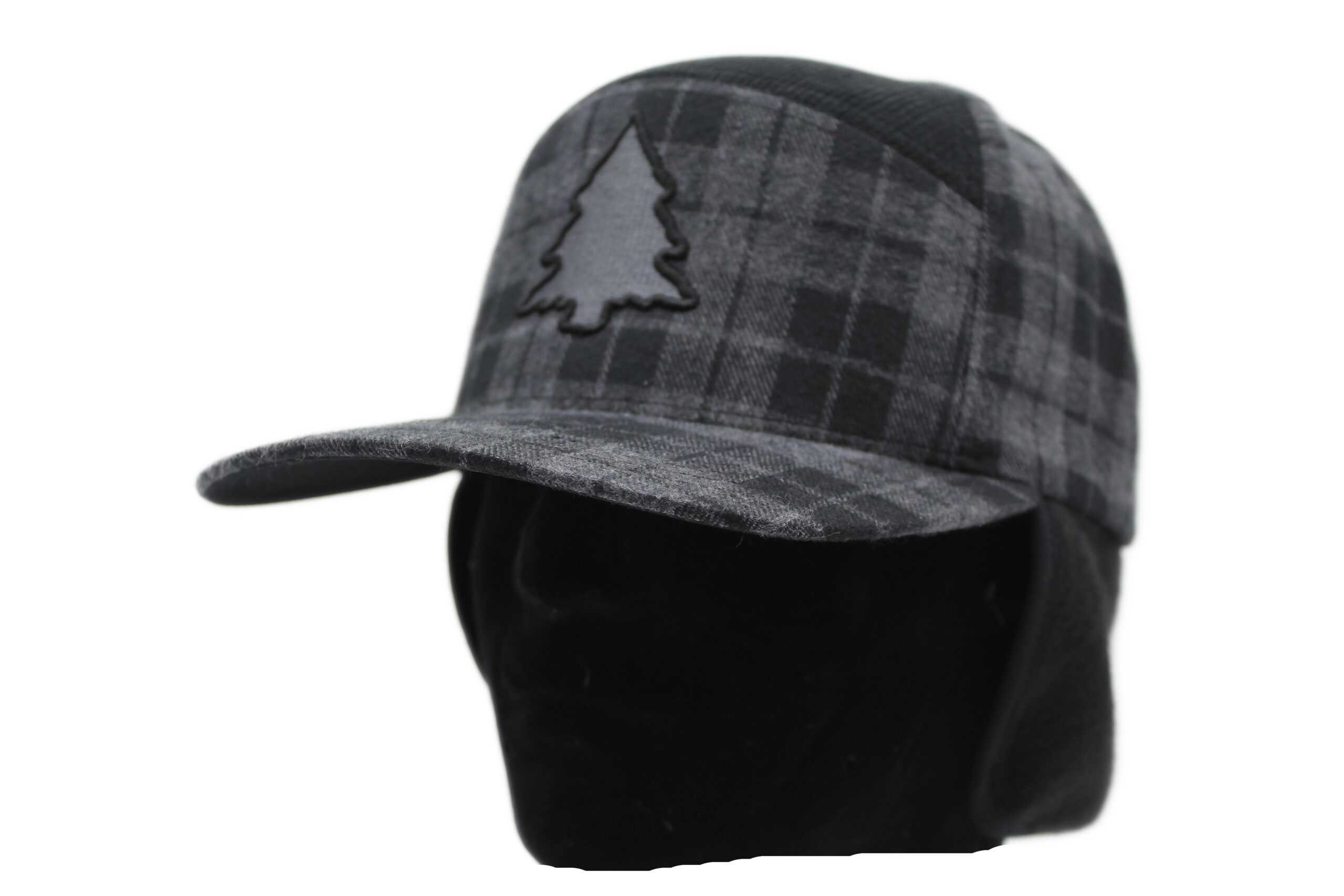 Grey Plaid Earflap Camper Hat